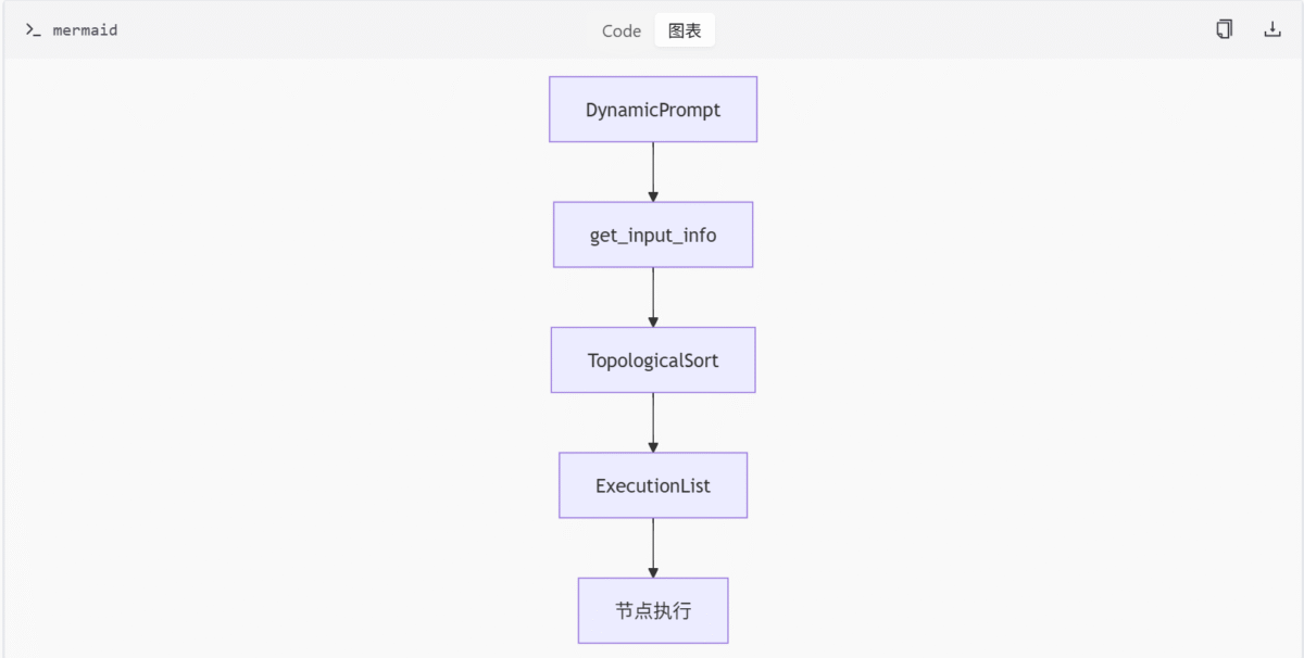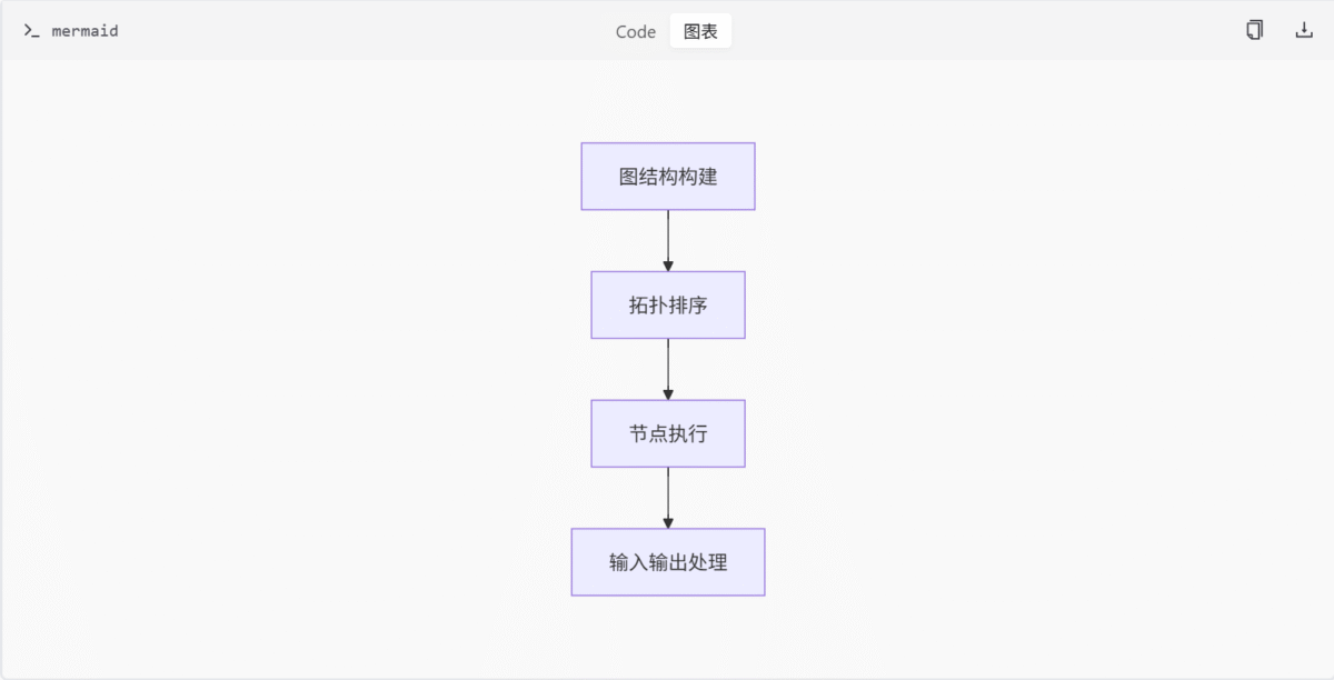 - 节点执行:按照排序结果,依次执行节点,并处理节点间的输入输出关系。