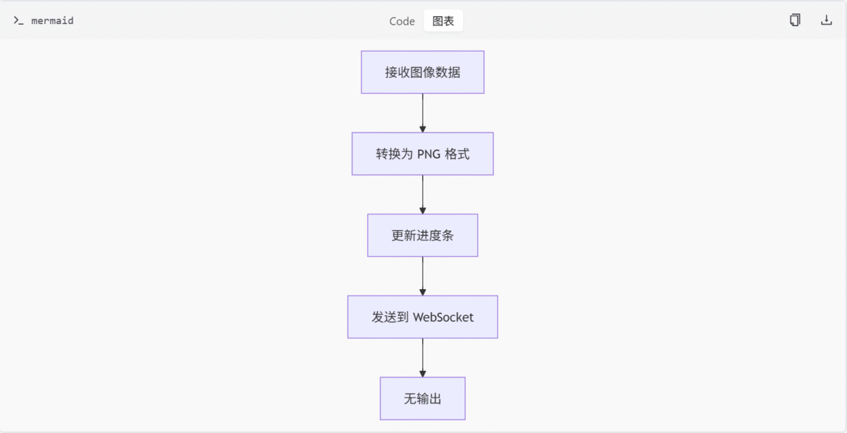 更新进度条。 - WebSocket 传输:将图像以二进制形式发送到 WebSocket。